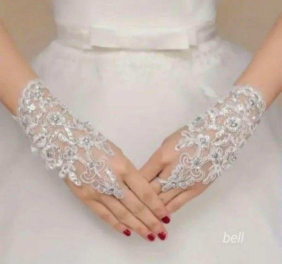 - ラスト1点 ウエディンググローブ ショートグローブ レース ラインストーン ブライダル