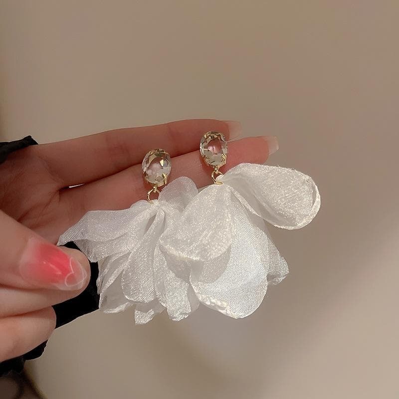 - ホワイト 花びら ふわふわ シフォン アクセサリー ピアス ストーン ゆらゆら