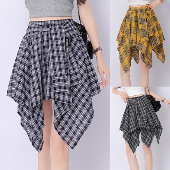- スカート アシンメトリー フリル バイカラー スリム 着痩せ チェック柄 sweet系 L ブラック