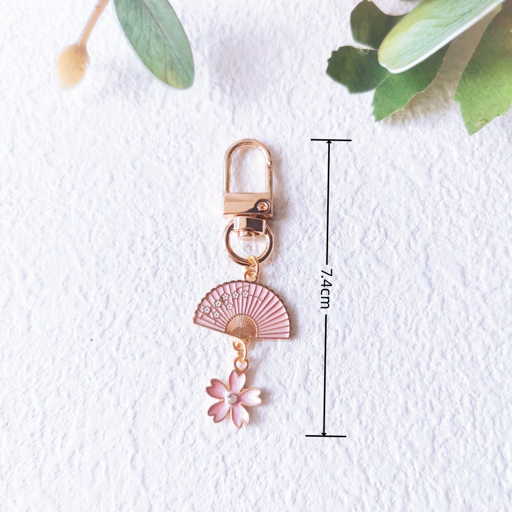 - 和風 桜の扇子キーホルダー ピンク 合金 滴油チャーム バッグ用