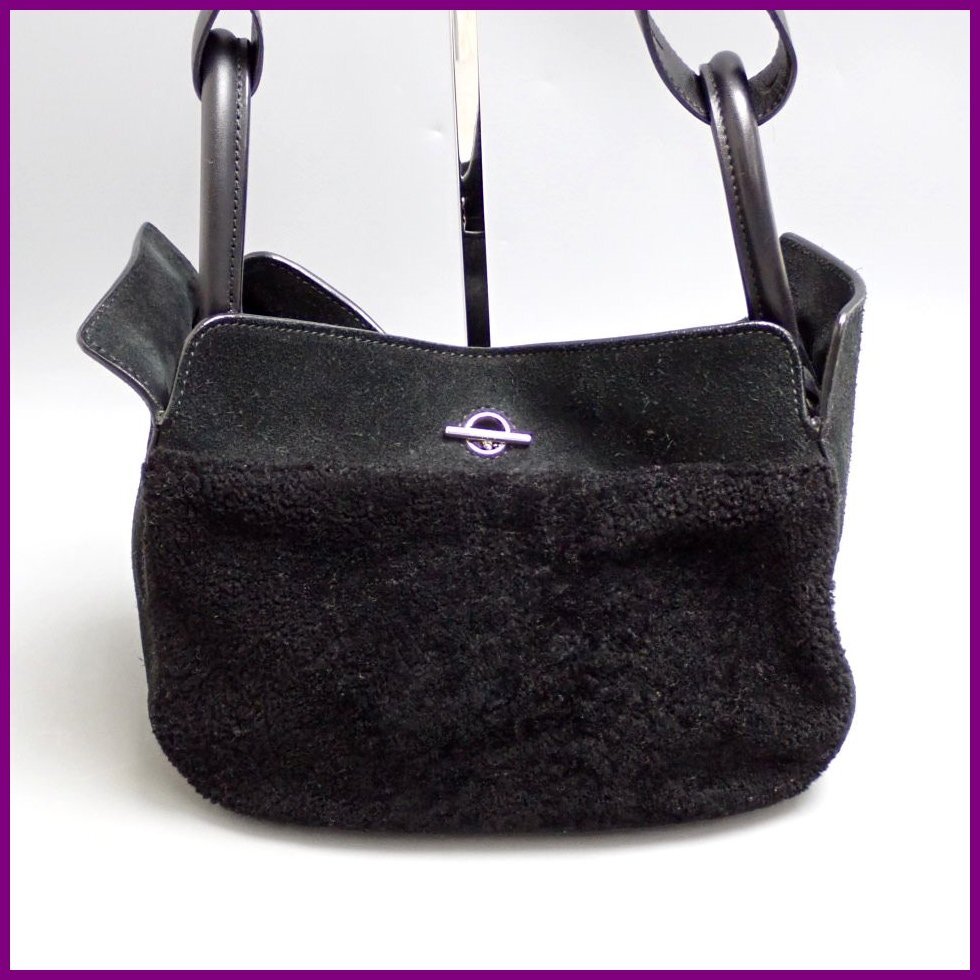 > ★michino paris/ミチノパリ ショルダーバッグ/ブラック/スエード×ボア/肩掛け/保管袋付き&2161700003
