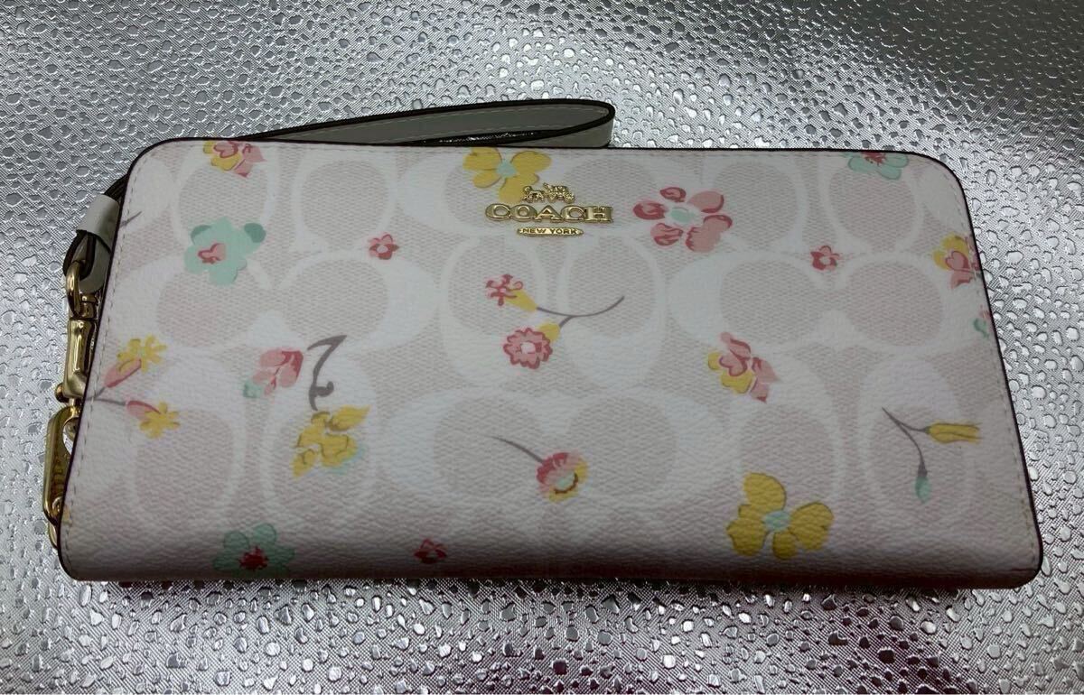 > ★人気★新品★COACH 長財布 ラウンドファスナー コーチ ウォレット 大人気スタイル オシャレ ストラップ付き フラワーデザイン!