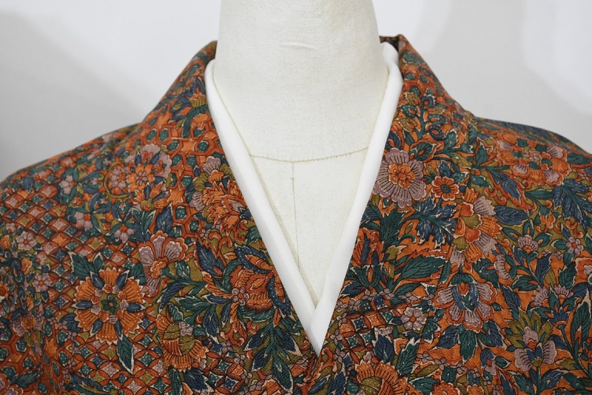 - 小紋 着物 袷 更紗 花 身丈160cm 裄丈67.5cm ★ kb-7526 桜庭呉服店