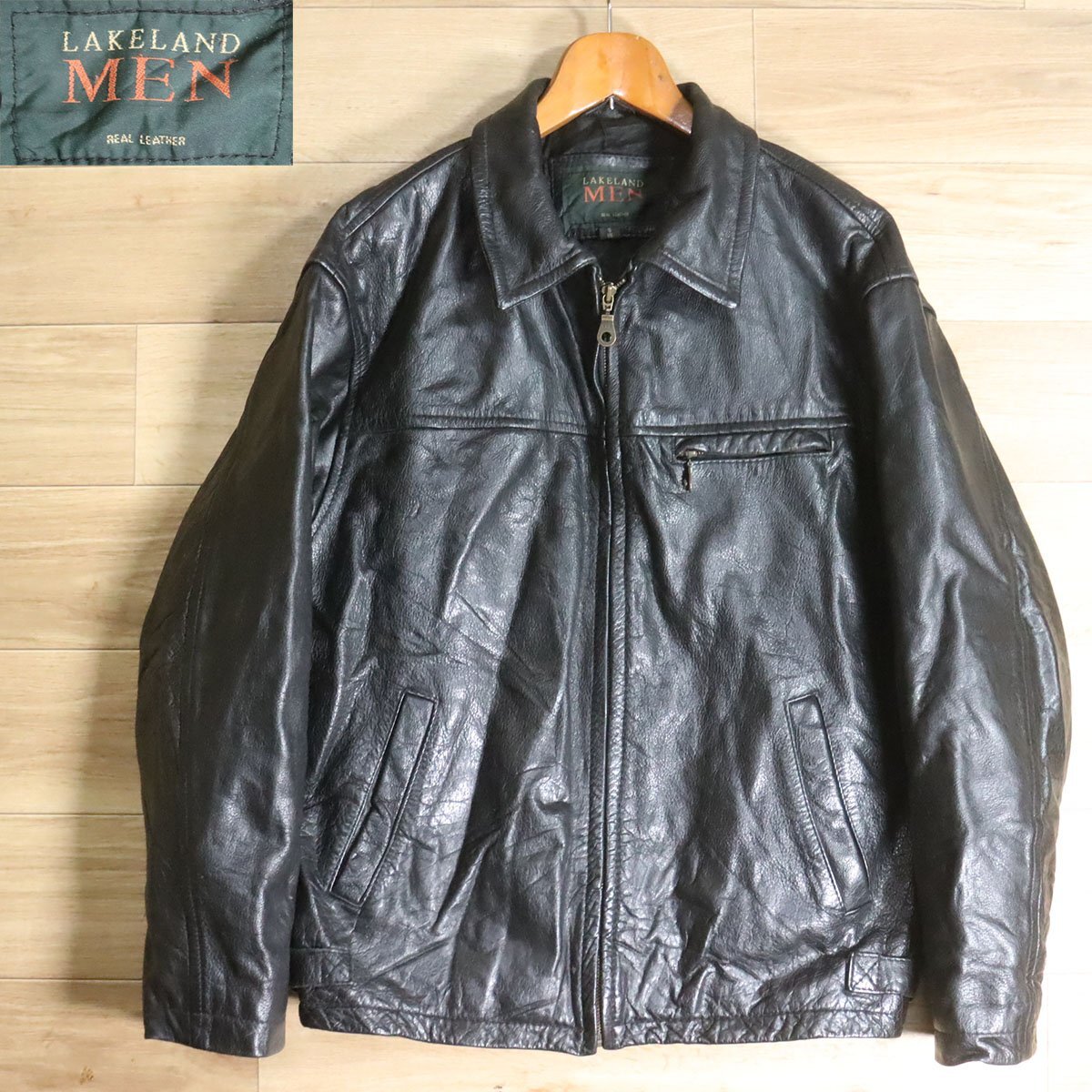 - I11O/Y6.2-2 LAKELAND MEN レイクランド 本革 ジップアップ 革ジャン 皮ジャン レザージャケット レザーブルゾン S ブラック系