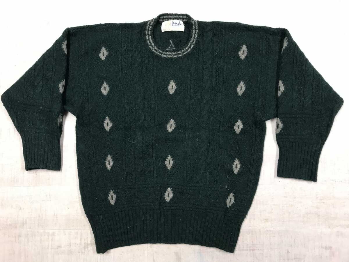 > プリングルオブスコットランド Pringle of Scotland トラッド アーガイル ケーブル編み ローゲージ ニットセーター メンズ ウール100% M 緑