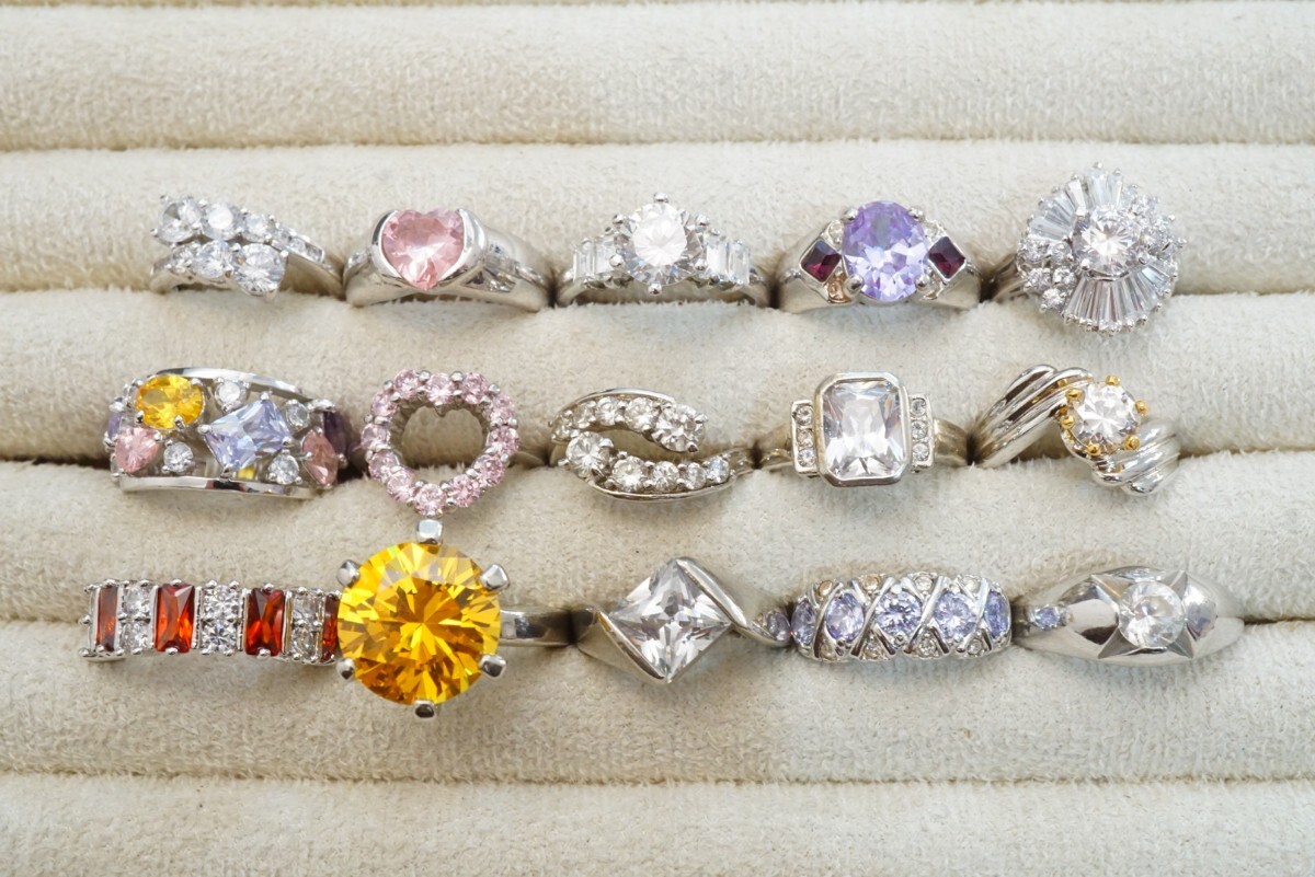 > C858 キュービックジルコニア CZ ジルコニア リング 指輪 15点セット ヴィンテージ アクセサリー 大量 まとめて おまとめ まとめ売り