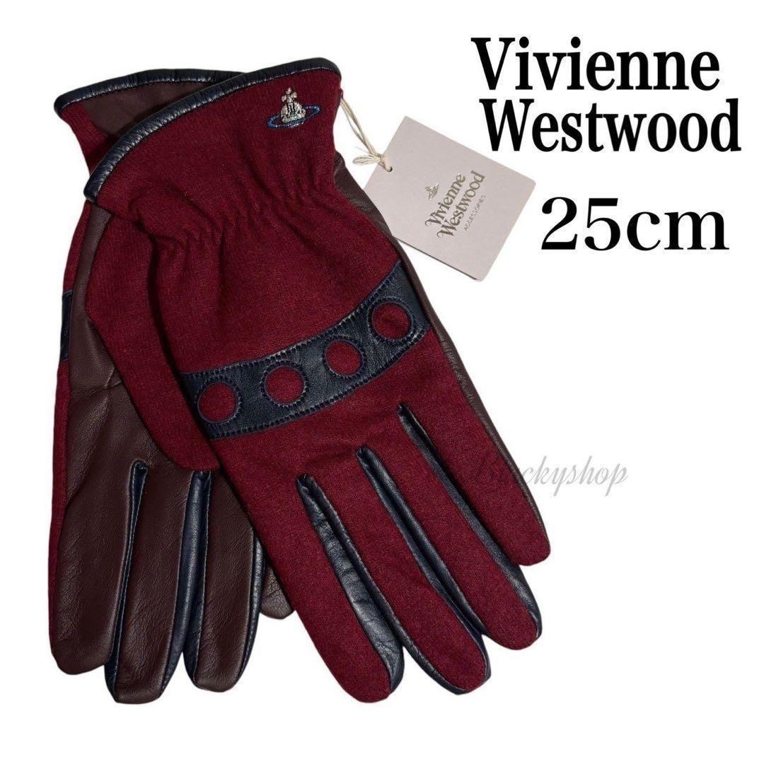 - ヴィヴィアン ウエストウッド 手袋 グローブ ニット × レザー パンチング 未使用 タグ付き メンズ ボルドー 25cm オーブ スマホ 対応