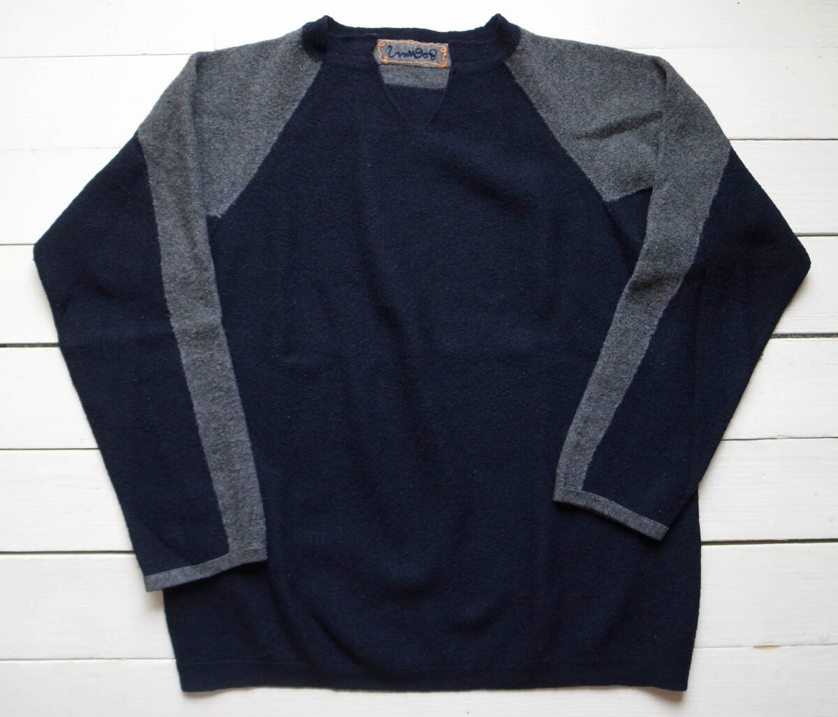 - umii908 / 45R ノーカラー スキッパーニット 4 ネイビー×グレー 45rpm