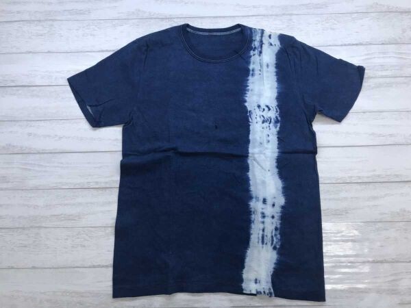 - オールド レトロ サーフ 古着 絞り染め 加工 プリントボディーにも◎ 半袖Tシャツ メンズ コットン100% 紺 白