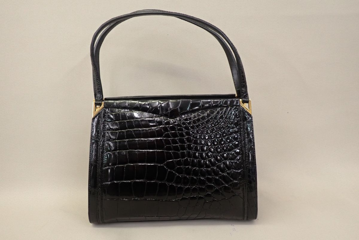- ■バッグ30 クロコダイル 革 ハンドバッグ 黒■消費税0円