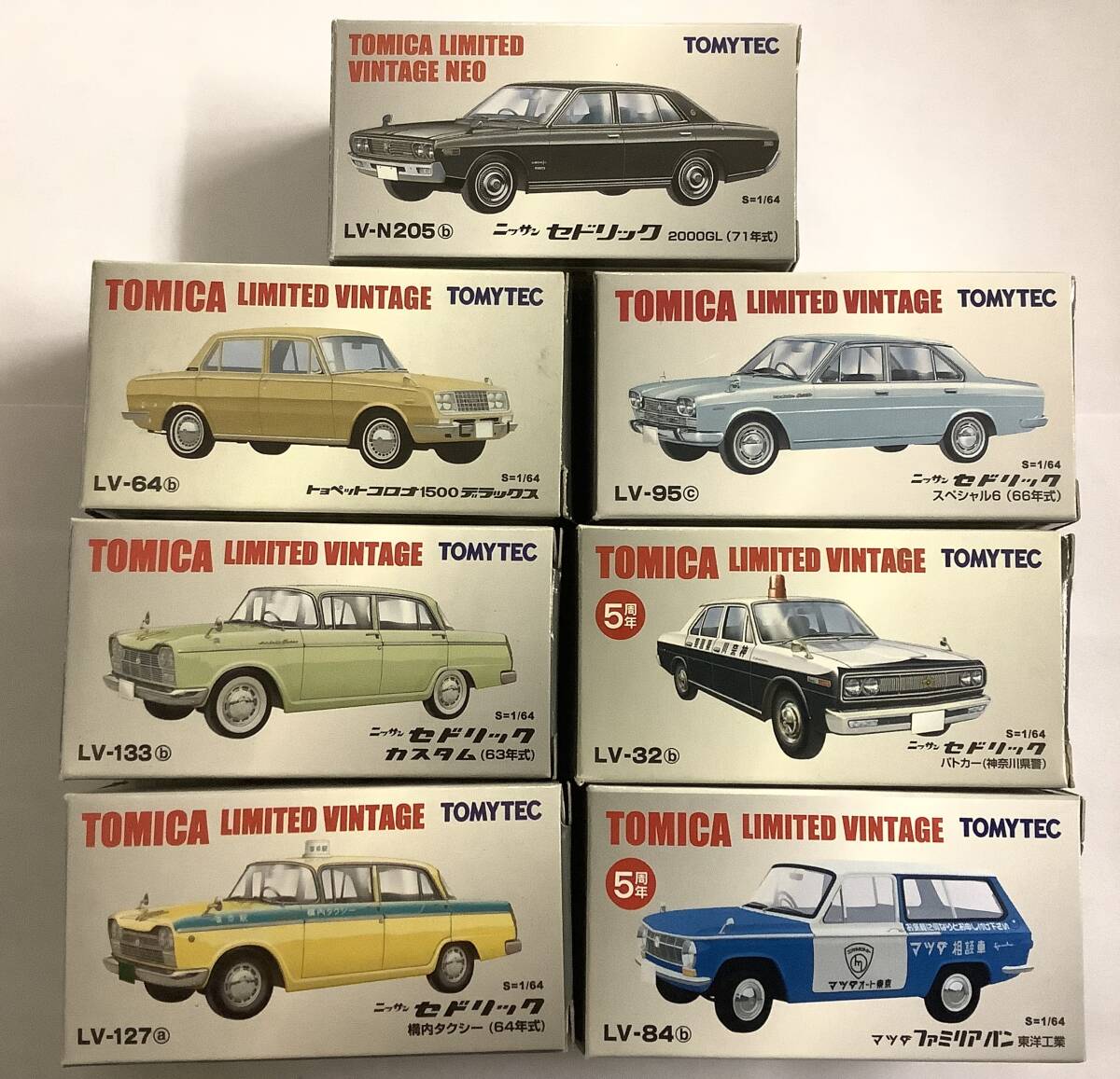 > [2] 7台セット TLV トミカリミテッドヴィンテージ 1/64 ファミリア バン 東洋工業 コロナ セドリック カスタム パトカー タクシー ミニカー