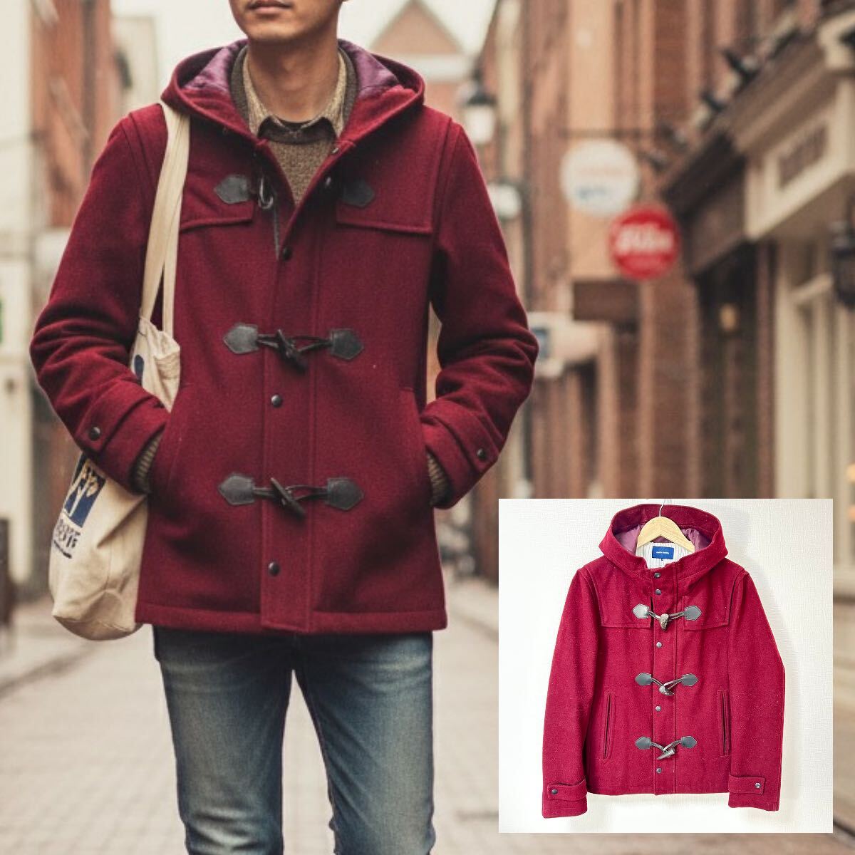 > 冬に映えるカラー◎【UNION STATION】ユニオンステーション ダッフルコート ショート丈 ウール アウター ボルドー系 メンズ03/Y37571YY