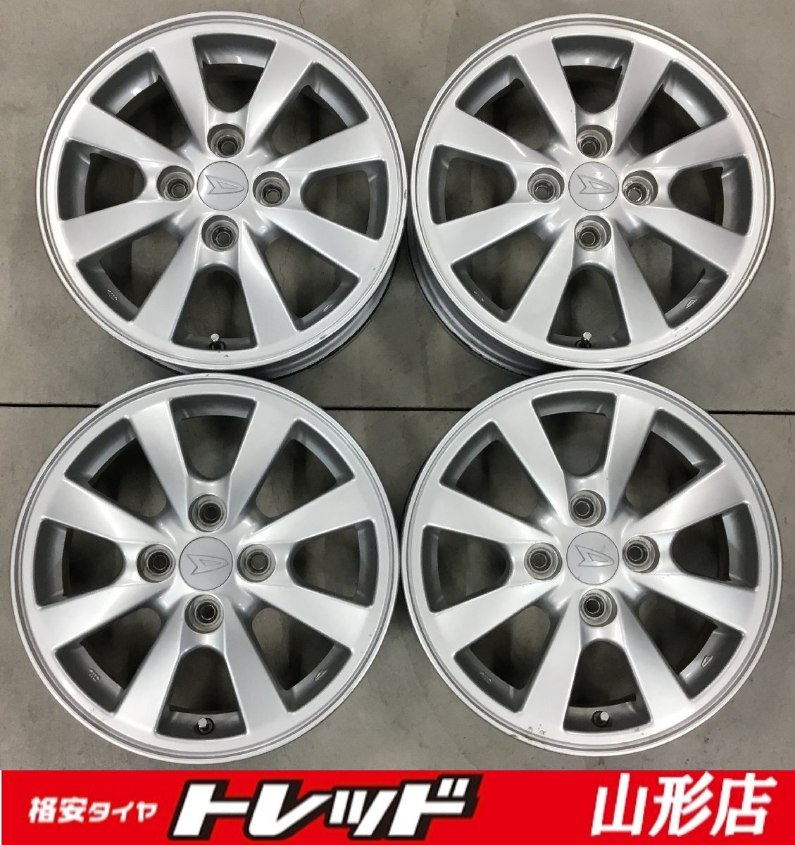 - 山形店 中古アルミホイール4本セット ダイハツ純正 14インチ 4.5J 4H100 インセット+45 タント ムーヴ等の ダイハツ軽自動車