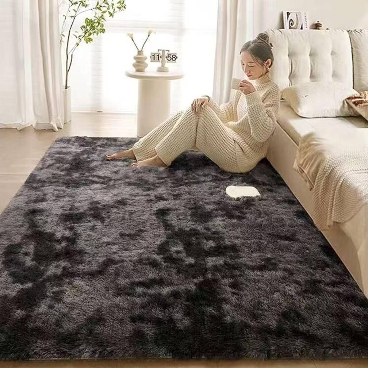 - カーペット ラグマット 長方形 ラグ シャギーラグ 120x160cm 絨毯 低反発 スモーキーグレー