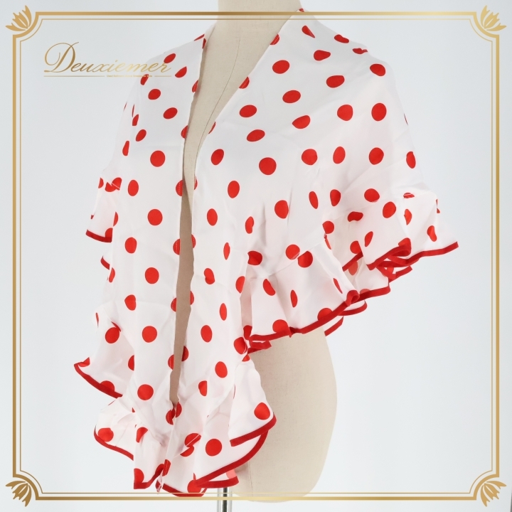 - フラメンコ 衣装 シージョ ピキージョ 小物 ホワイト系 白 レッド系 赤 水玉模様 ドット柄 フリル 三角形 練習 舞台 発表会 イベント