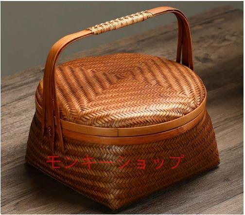 - 強くお勧め★ 手作りバスケット 自然竹編み上げカゴバック ナチュラル買い物カゴ 収納 未使用