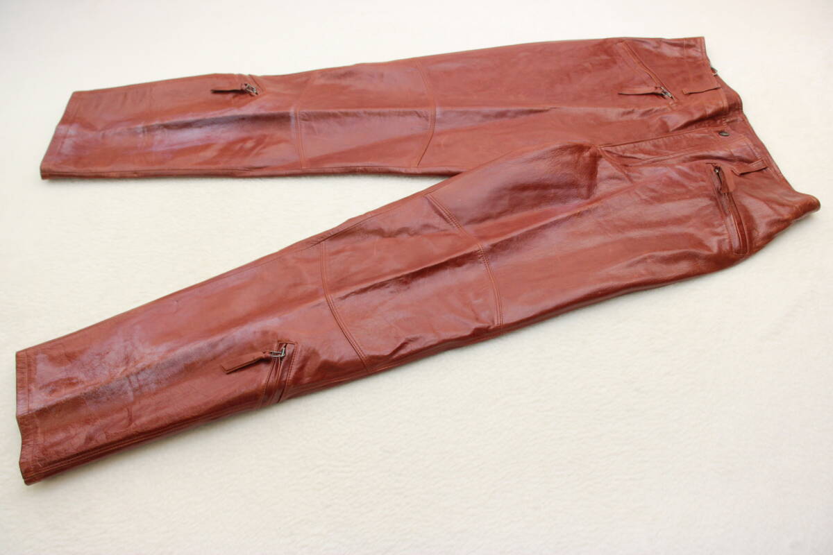 - 6314 新品タグ付き メンズ 高級本革レザーパンツ ブラウンLサイズ