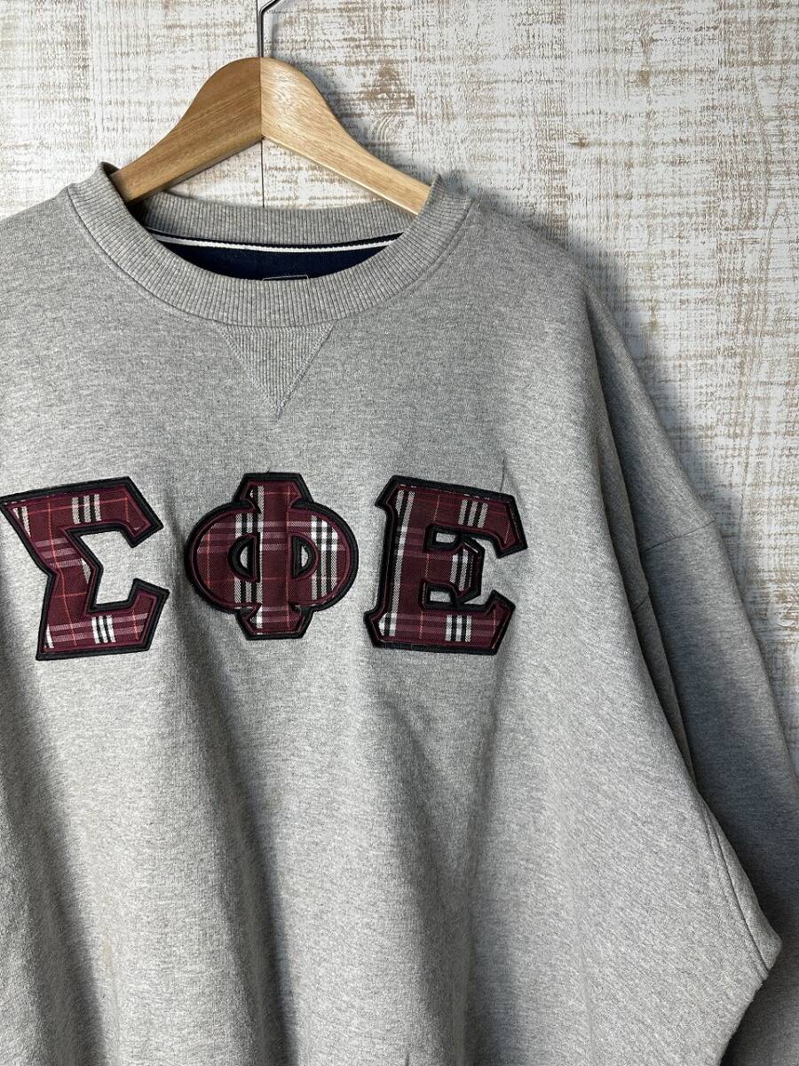 > ☆超ビッグサイズ US古着 Champion チャンピオン スウェット チェックワッペン レトロ ロゴ刺繍 グレー 裏起毛【3XL/XXXL】 ◆5367◆