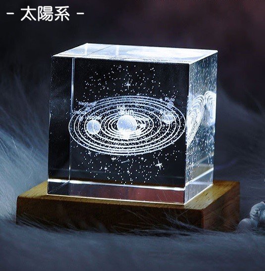 - オシャレな置き物 クリスタルライト 4cm 太陽系 オブジェ 室内 雑貨 パターン 立方体 透明 上品 結婚記念 卒業祝い 子供