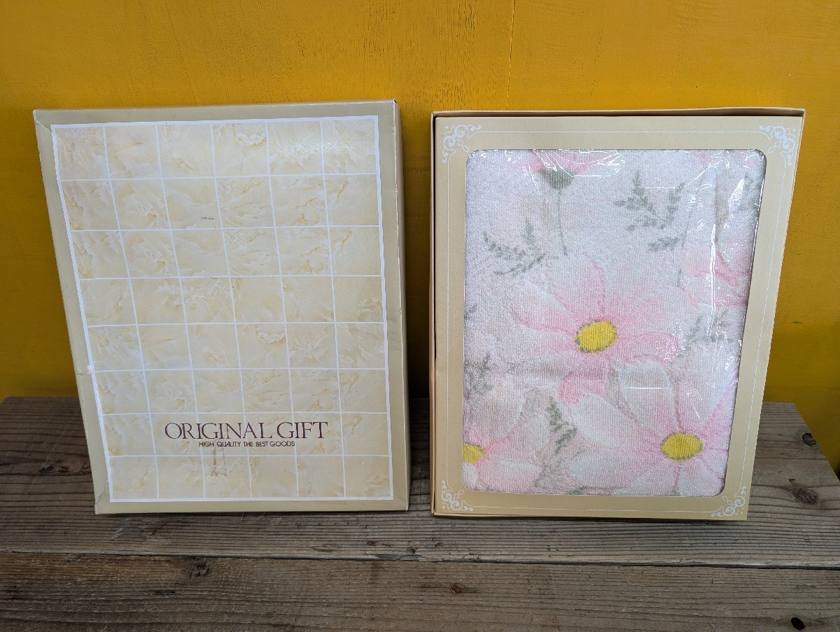 > 未使用★保管品★現状品★タオルケット★コスモス★昭和★レトロ★サイズ67cm×128cm