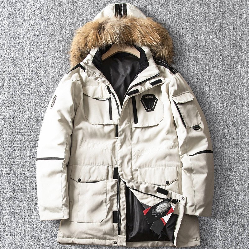- 新品 DCKMANY ダウンジャケット スタンドカラー ハイネック ファー付きフード 厚手 冬服 防寒 メンズ アウター ベンチコート 白 E885-XL