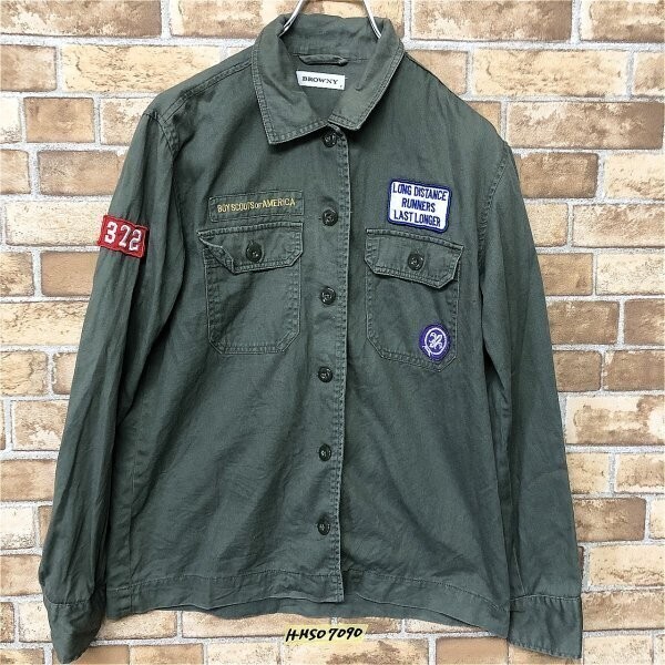 > BROWNY WEGO ウィゴー レディース ワッペン付き ミリタリー 長袖シャツ F カーキ