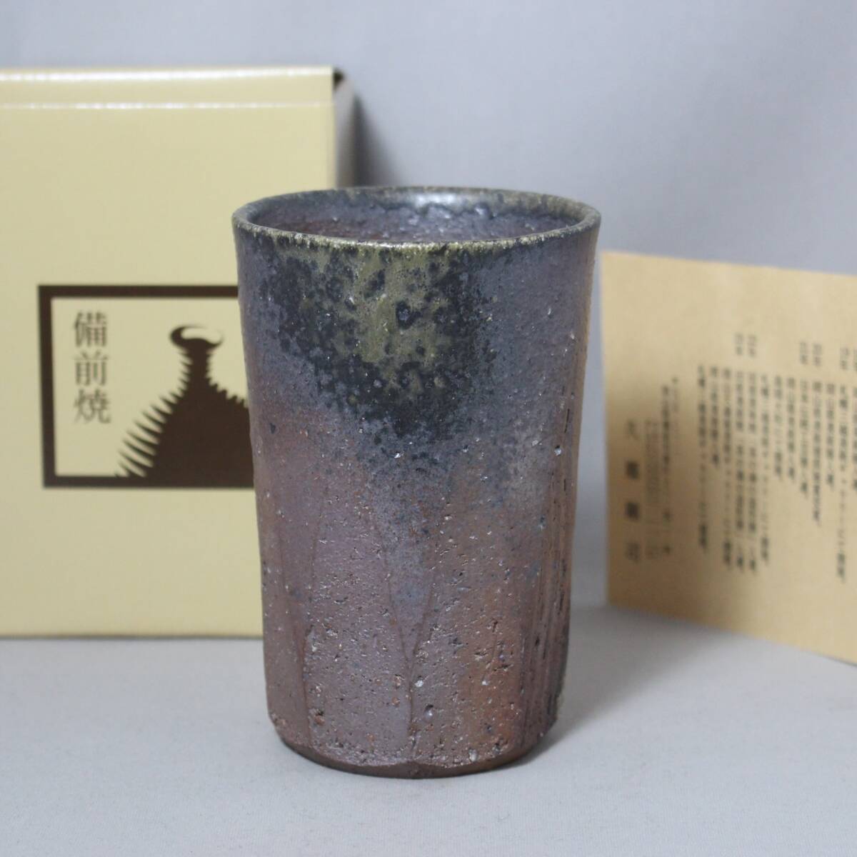 - 備前焼 剛司 作 ビアマグ ビアカップ麦酒 ビ久削大胡 新品 未使用