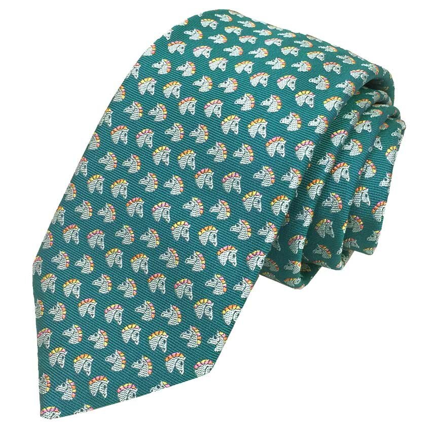 - 送料無料 HERMES エルメス ネクタイ メンズ CHEVAL REBELLE 馬 シルク エメラルドグリーン 未使用 aq11474