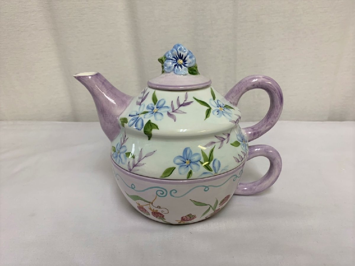 > ▽Tea for One ティーフォーワン ポット/カップセット 植物柄 未使用 長期保管品(カップ表面にひび割れ有り)▽006730