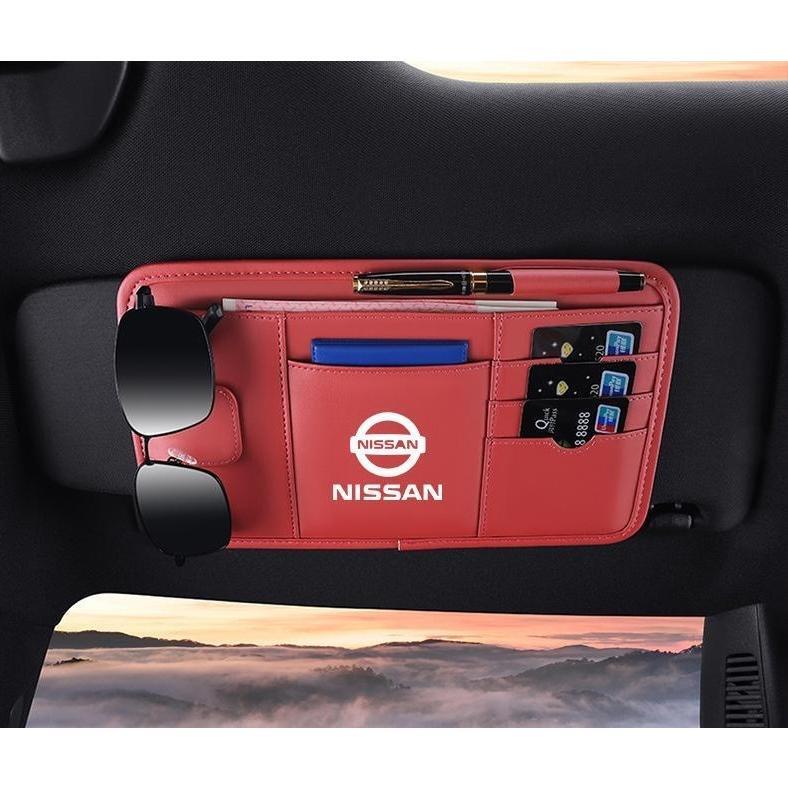 - 日産 NISSAN サンバイザーポケット 車用 小物入れ PUレザー カード メガネ ペン 収納ホルダー 多機能 サンバイザーケース