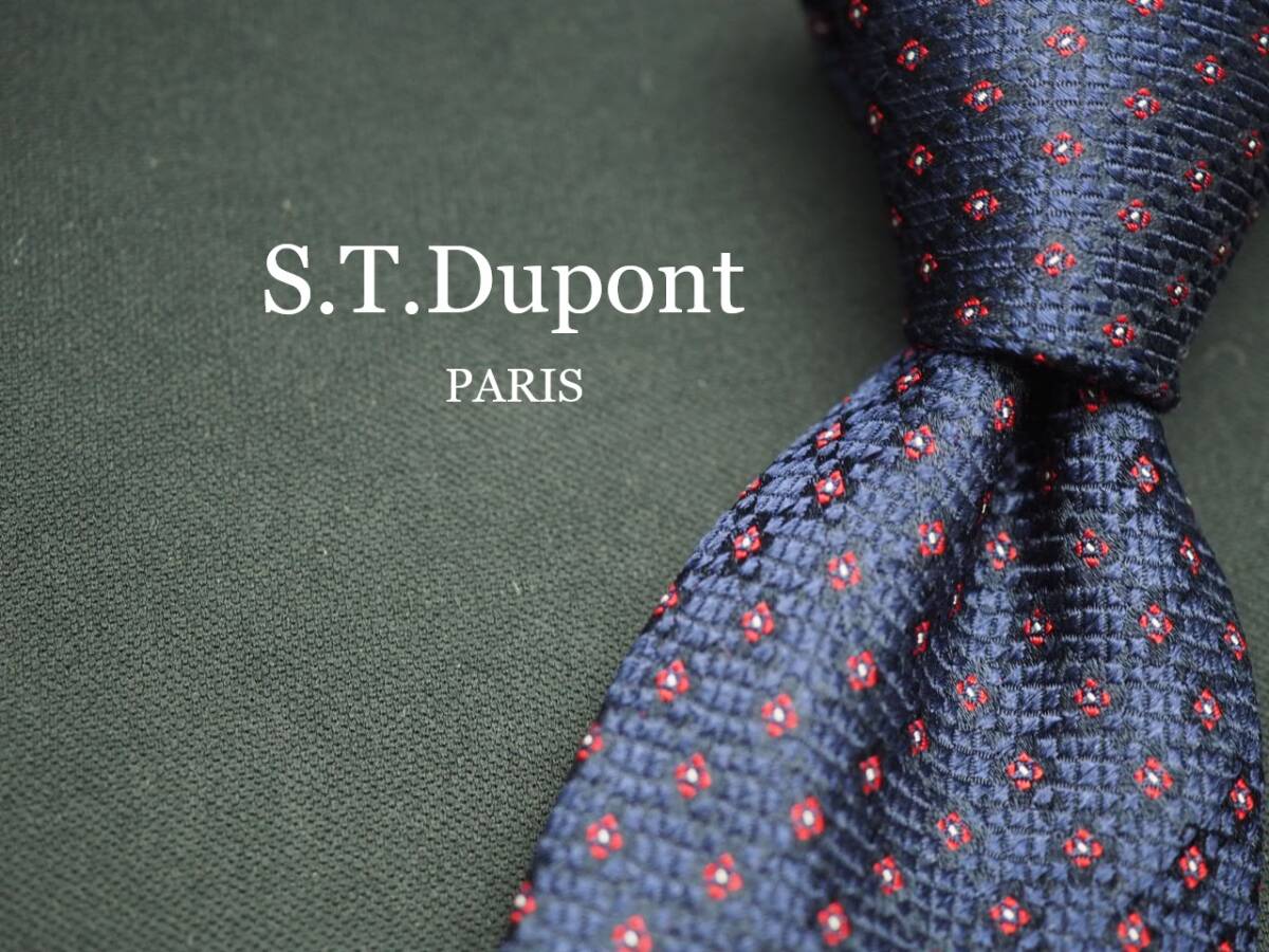 - 美品【S.T.Dupont デュポン】 G1101 ネイビー赤系 SILK ブランド ネクタイ 古着 良品 転売 仕入