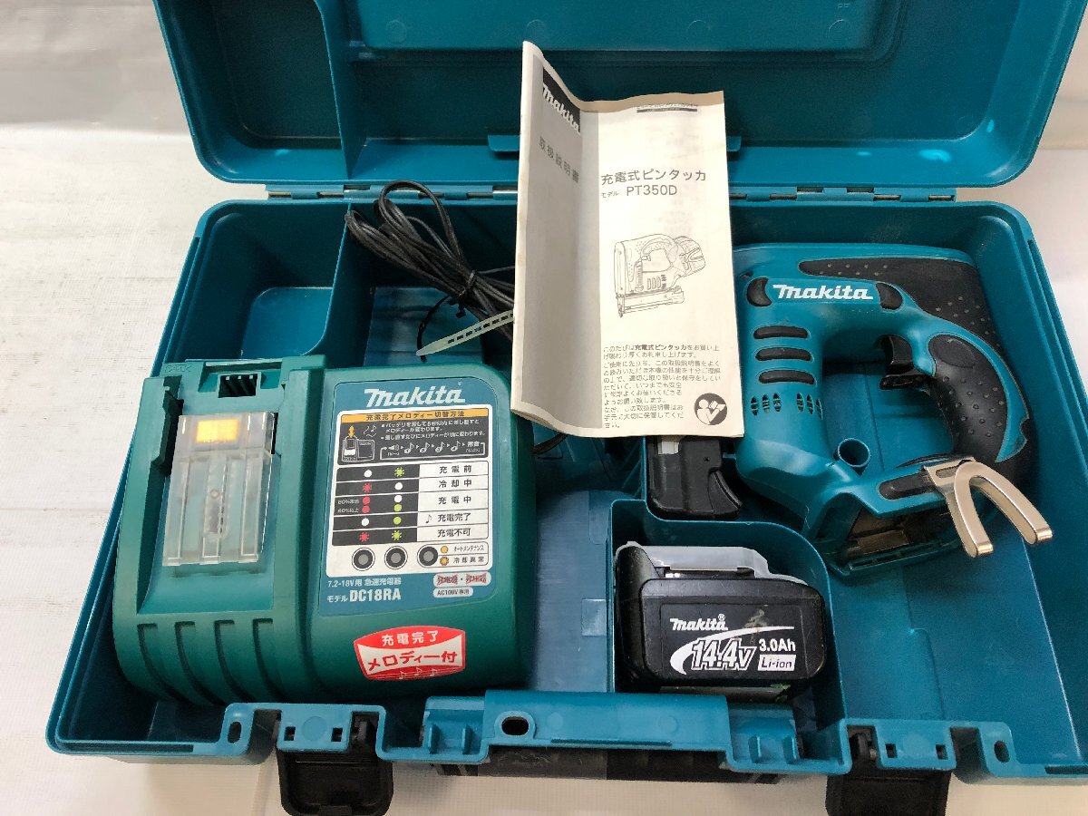 - makita マキタ 充電式ピンタッカ PT350DRF ケース/バッテリー1個/チャージャー付属 電動工具☆良品☆[555-1107-2O12]