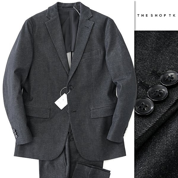 > 新品 タケオキクチ EVER DENIM 洗える デニム セットアップ スーツ L 黒 【J52121】 秋冬 THE SHOP TK ストレッチ ジャケット パンツ