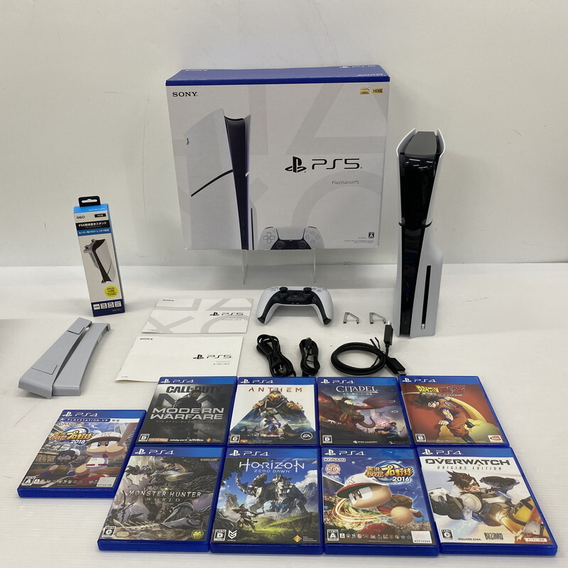 - TEI【現状渡し品】PS5(CFI-2000A01 1TB)・横置き用スタンド・ソフトまとめセット OW モンハンワールド など〈032-251107-TS-15-TEI〉