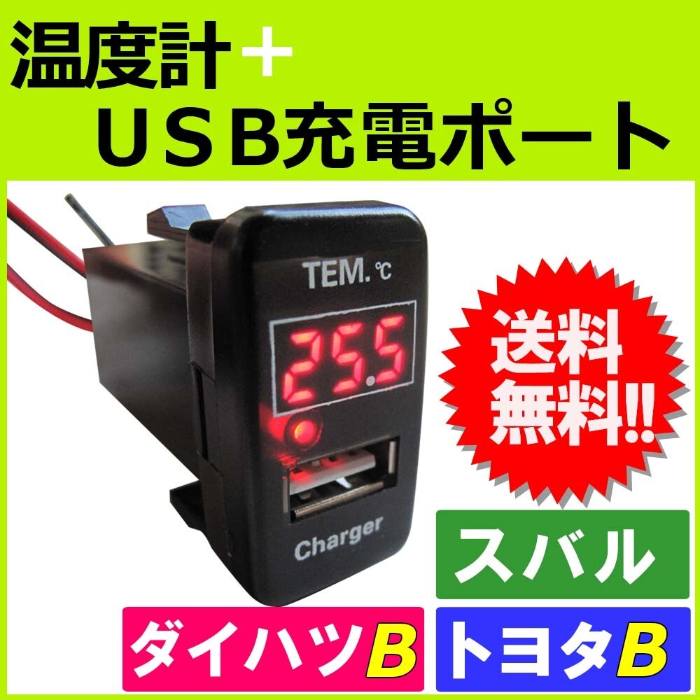 - 【互換品】温度計 USB充電ポート増設キット (トヨタB ダイハツ スバル) / LED色:レッド / 40x22mm