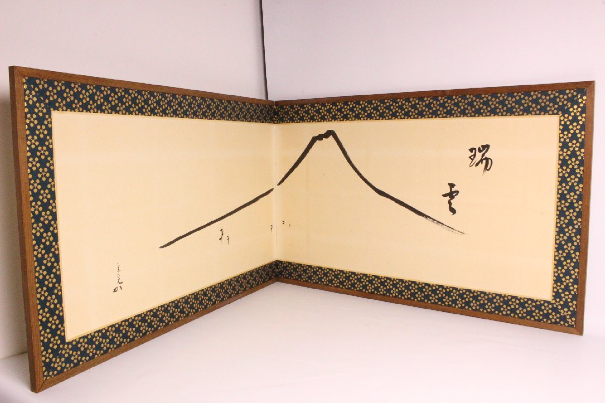 表千家 堀内宗完 画・花押 風炉先屏風( 瑞雪 )「共箱」