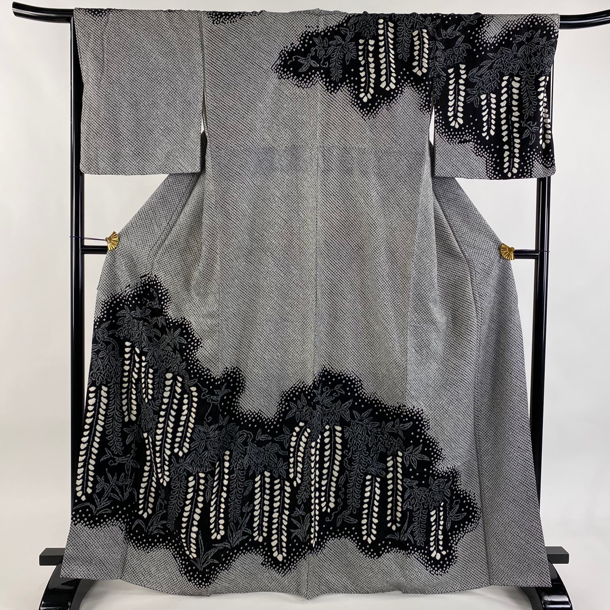 - 【美品】 訪問着 身丈165cm 裄丈67.5cm L 袷 藤 絞り 黒 正絹 秀品 【中古】