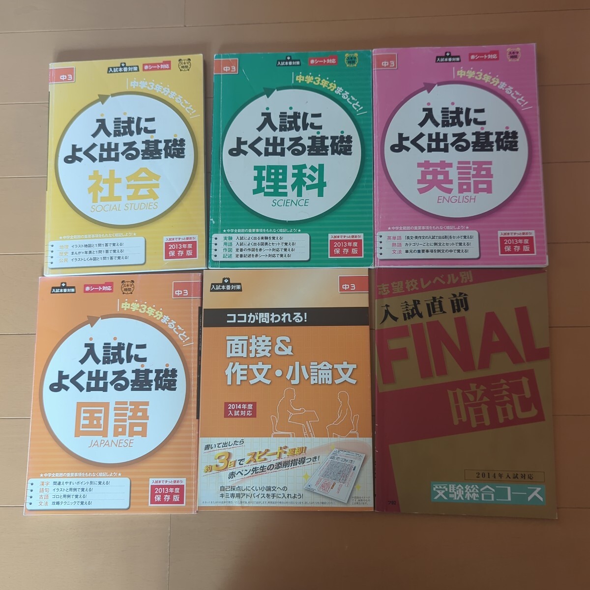 > 中古☆進研ゼミ中学講座6冊☆3年生☆charenge☆高校入試☆暗記ブック☆面接・作文・小論文☆英語・国語・理科・社会☆送料込み