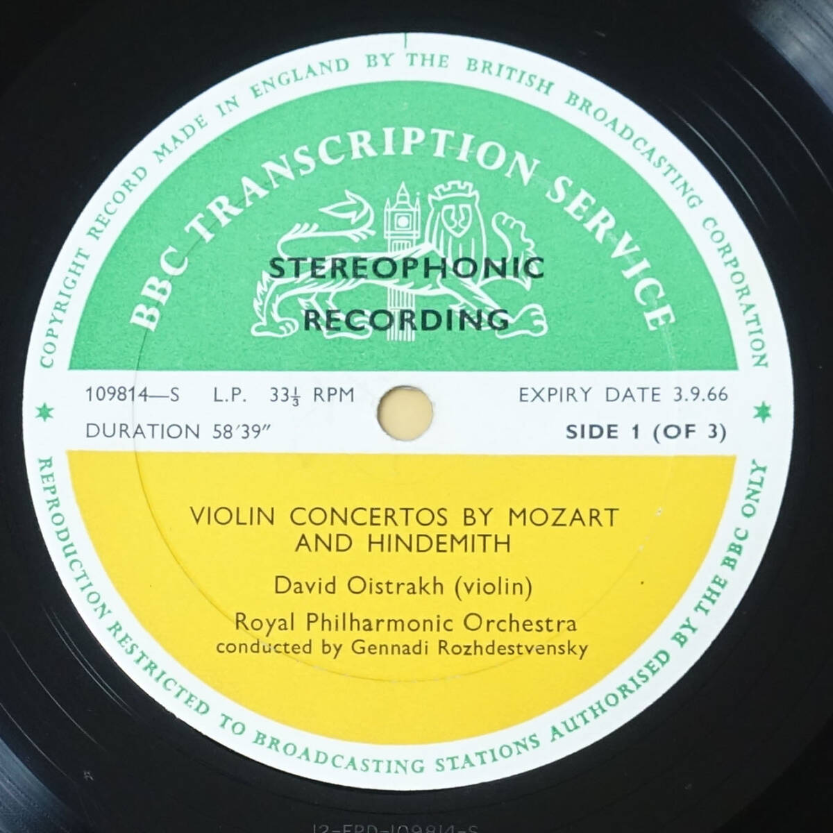 - 超レア! 英BBC Live Recording ヒンデミット&モーツァルト: ヴァイオリン協奏曲 オイストラッフ