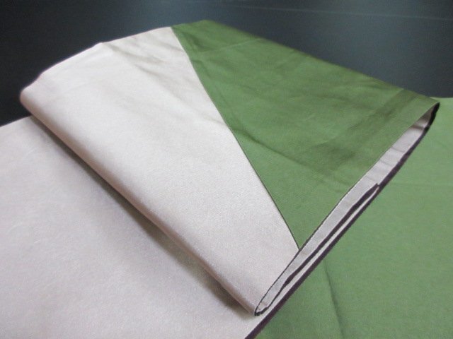 - 1円 良品 袋帯 正絹 和装 和服 ツートンカラー 無地 お洒落 六通柄 長さ382cm【夢職】★