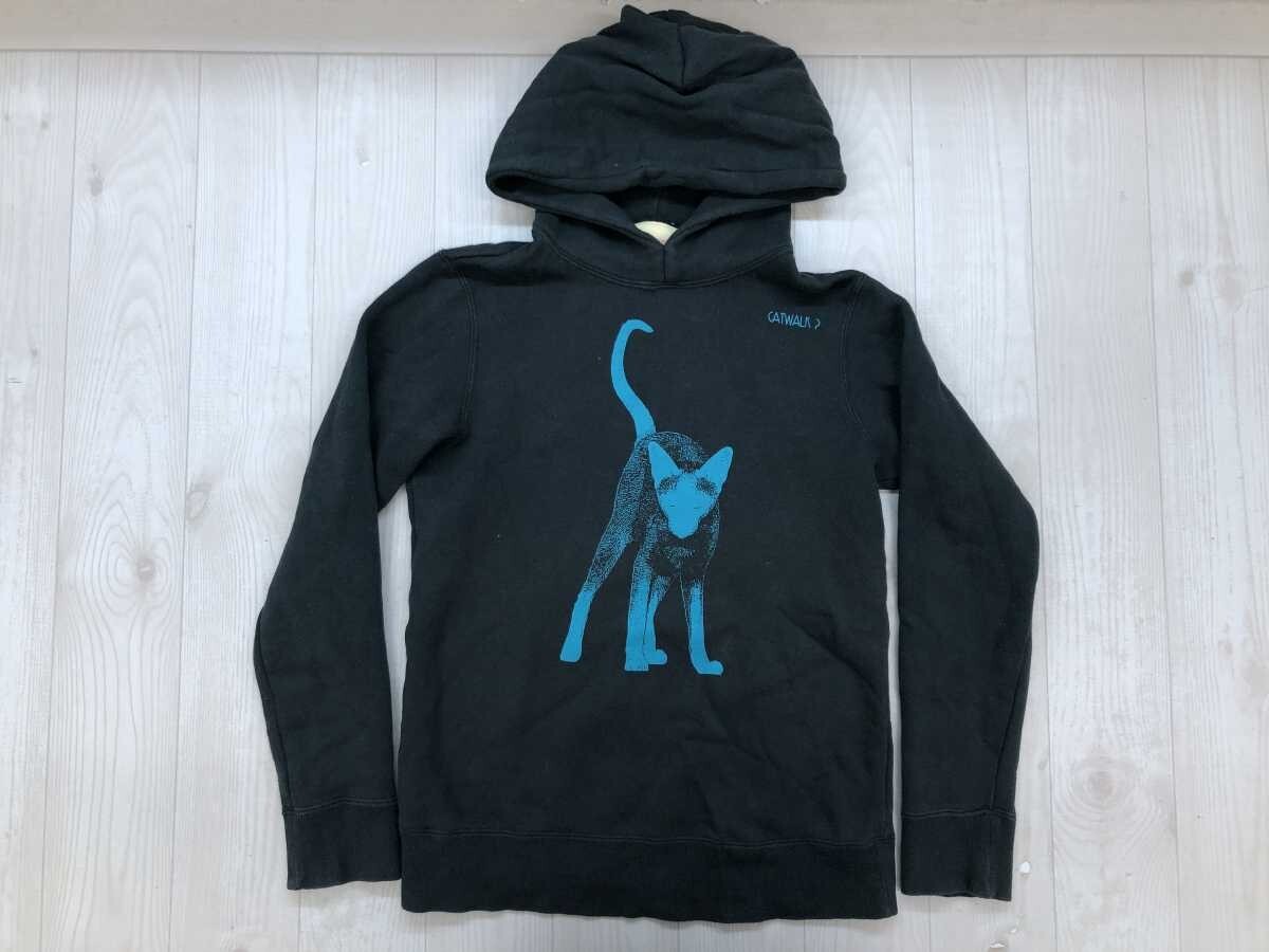 - WAYRG アメカジ ストリート 手描き風 猫 ネコ CATWALK プリント スウェット フーディー パーカー レディース 裏起毛 コットン100% 1 紺