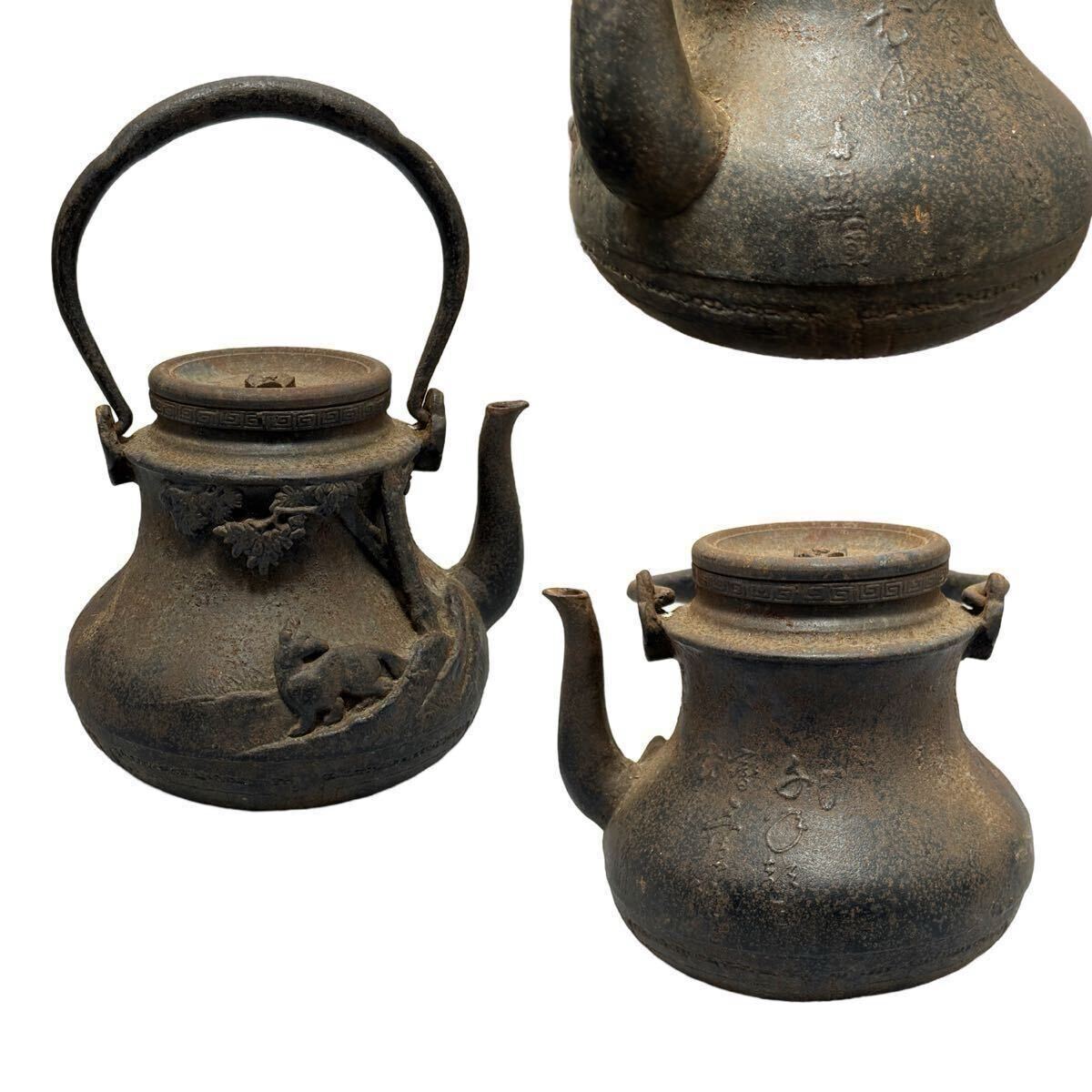 - 鉄瓶 大国寿朗 造 金龍堂 名人 松下狐紋 茶道具 煎茶道具 急須 鉄器 時代物 南部鉄器 アンティーク 茶器 骨董