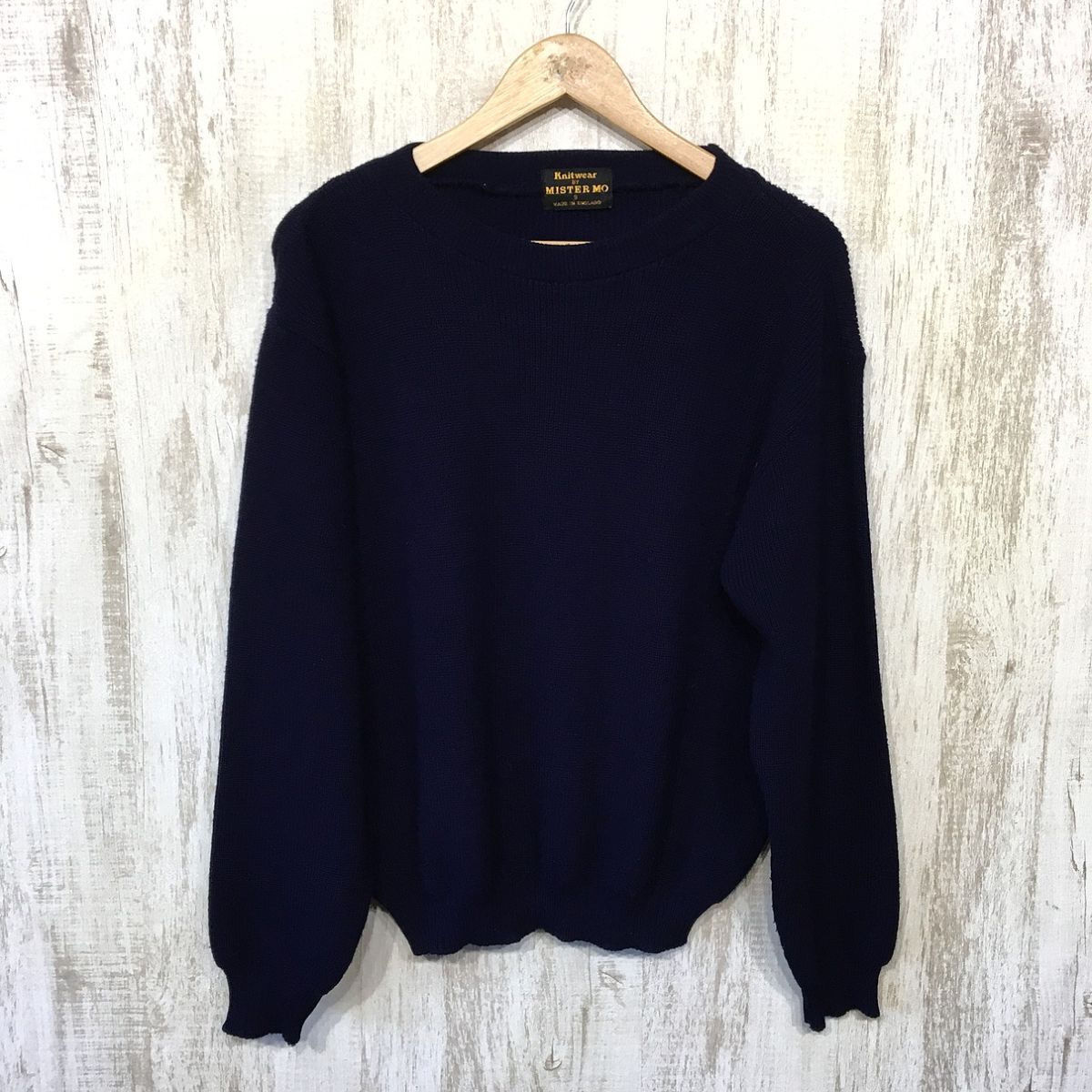 - 305☆【英国製 ユーロ古着 ウールニットセーター】MISTER MO 紺 S