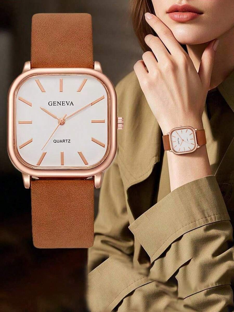 > 腕時計 レディース クォーツ 1個/セット レディース スクエアストラップ ウォッチ、ファッショナブルでカジュアル、親子ウォッチ