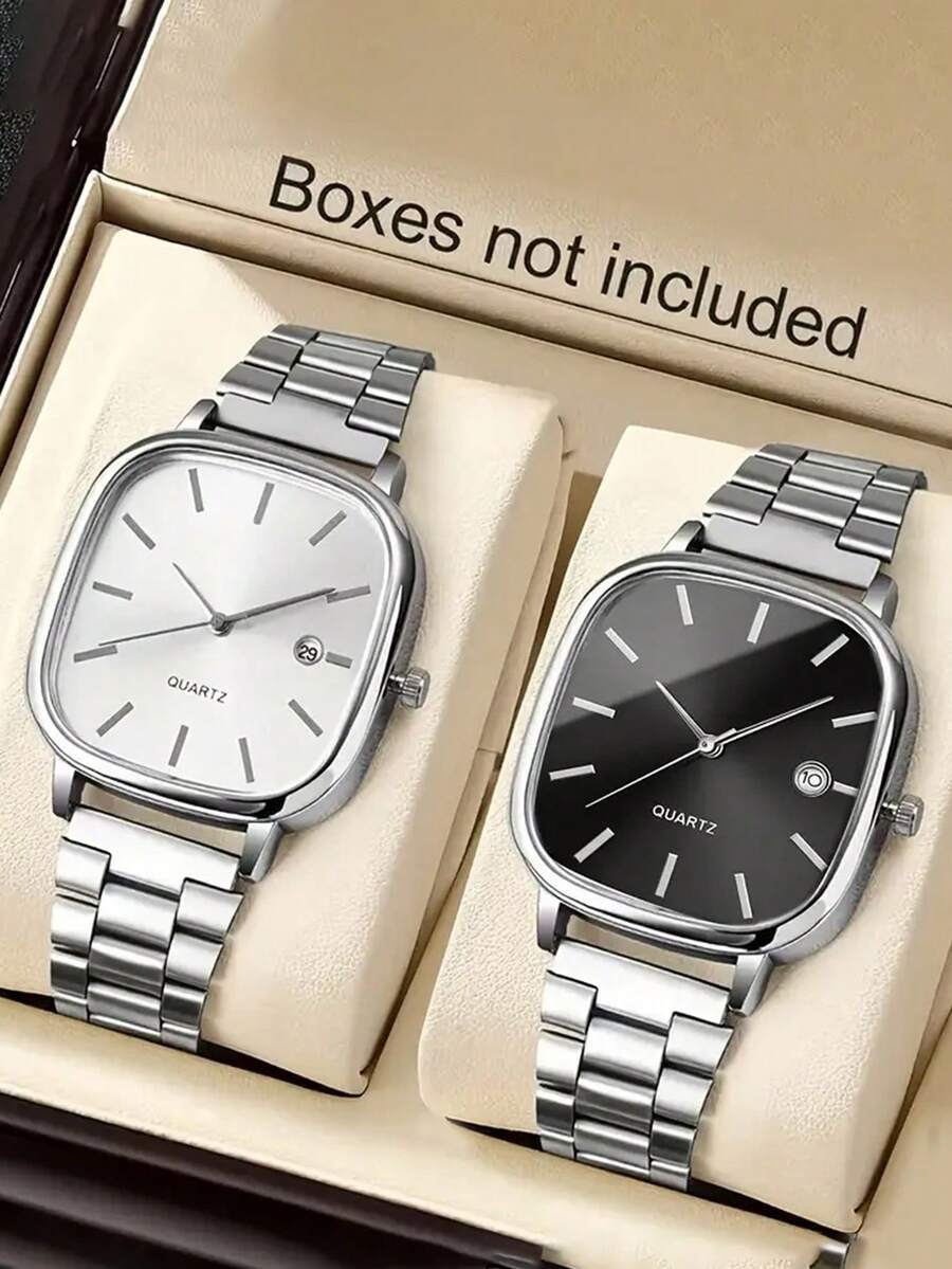 - 腕時計 メンズ セット 2個セット スクエアダイアル合金バンド メンズビジネスカジュアル クォーツ腕時計、カレンダーポインター ア