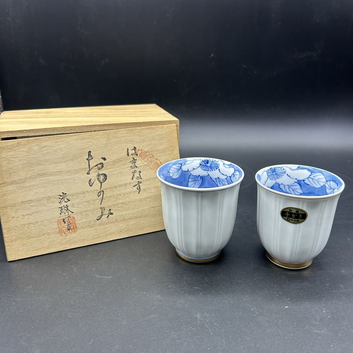 - 有田焼 光琳窯 はまなす おゆのみ 湯呑 夫婦 染付 コップ 陶器 食器 和食器 フ8