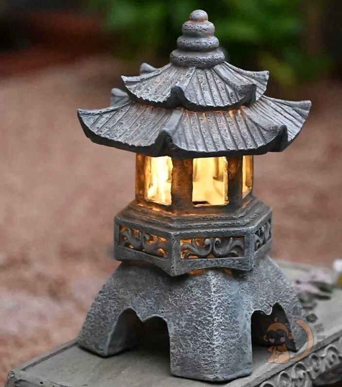 - 屋外庭園 ソーラーランタン 樹脂像 タイプ F 和風 四角 四足 灯篭 庭飾り ガーデン 置物 オブジェ 枯山水 盆栽造園 盆栽飾り