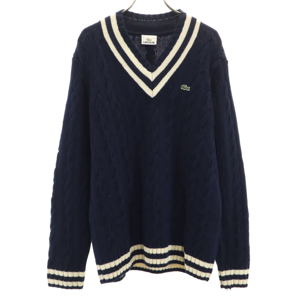 LACOSTE ラコステ 長袖 Vネック セーター 4 ネイビー ケーブルニット メンズ拍卖