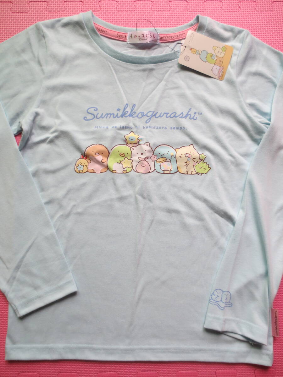 - 新品4割引~ 150 すみっコぐらし 長袖Tシャツ 水色 星空さんぽ しろくま ねこ とかげ ぺんぎん? とんかつ えびふらいのしっぽ 送料無料
