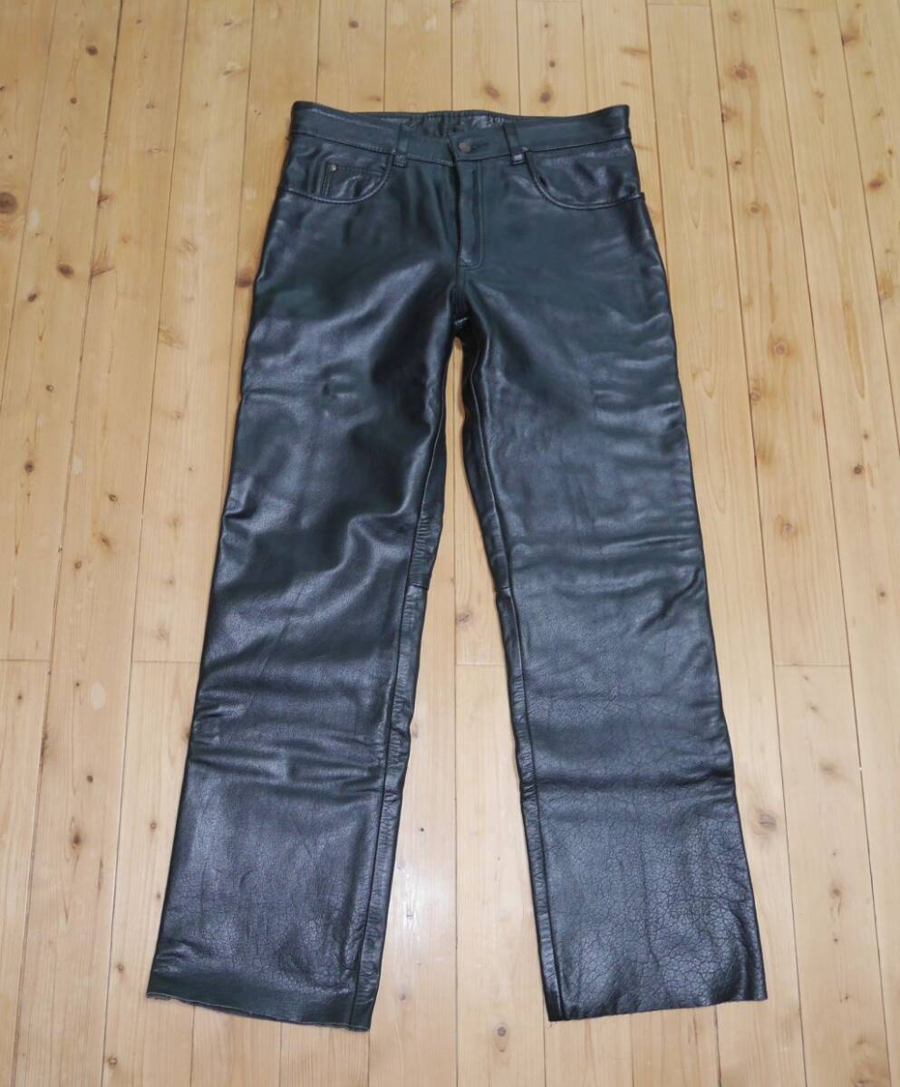 - バッファローレザーパンツ 水牛革パンツ 本革パンツ 1枚革 股下 80cm